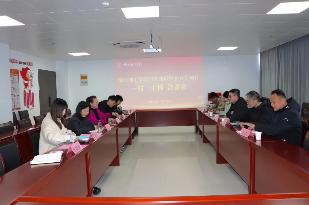 3月17日下午,淮北理工学院经济与管理学院与杜集区围绕校地合作项目“一村一主播”在行政楼7楼725会议室举行洽谈会。杜集区老干部管理服务中心副主任王君,段园镇党委委员、组织委员常迟,杜集区组织部工作人员姚萍,朔里镇段庄村党总支书记、村委会主任丁杰,石台镇梧桐村党总支副书记、村委会副主任孙召等出席会议;经济与管理学院院长助理张珊、叶赵强,书记助理员禹辛,教学秘书李健,团总支书记王绎程等参加会议,院长吴玲主持会议。