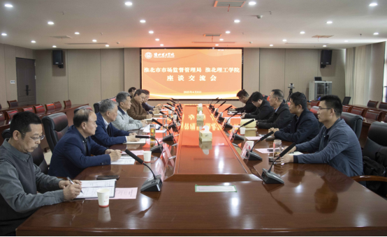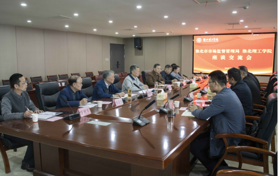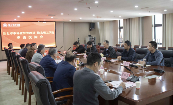 4月8日下午,淮北市市场监督管理局一行来校,就知识产权工作开展深入交流。淮北市市场监督管理局副局长孙川、知识产权服务科科长王玉飞、知识产权事业发展中心主任祝韦韦、杜集区市场监督管理局局长梁瑞、知识产权事业发展中心主任何磊,我校校长杨兵、副校长汪建利及有关二级学院、职能部门负责人参加座谈。
