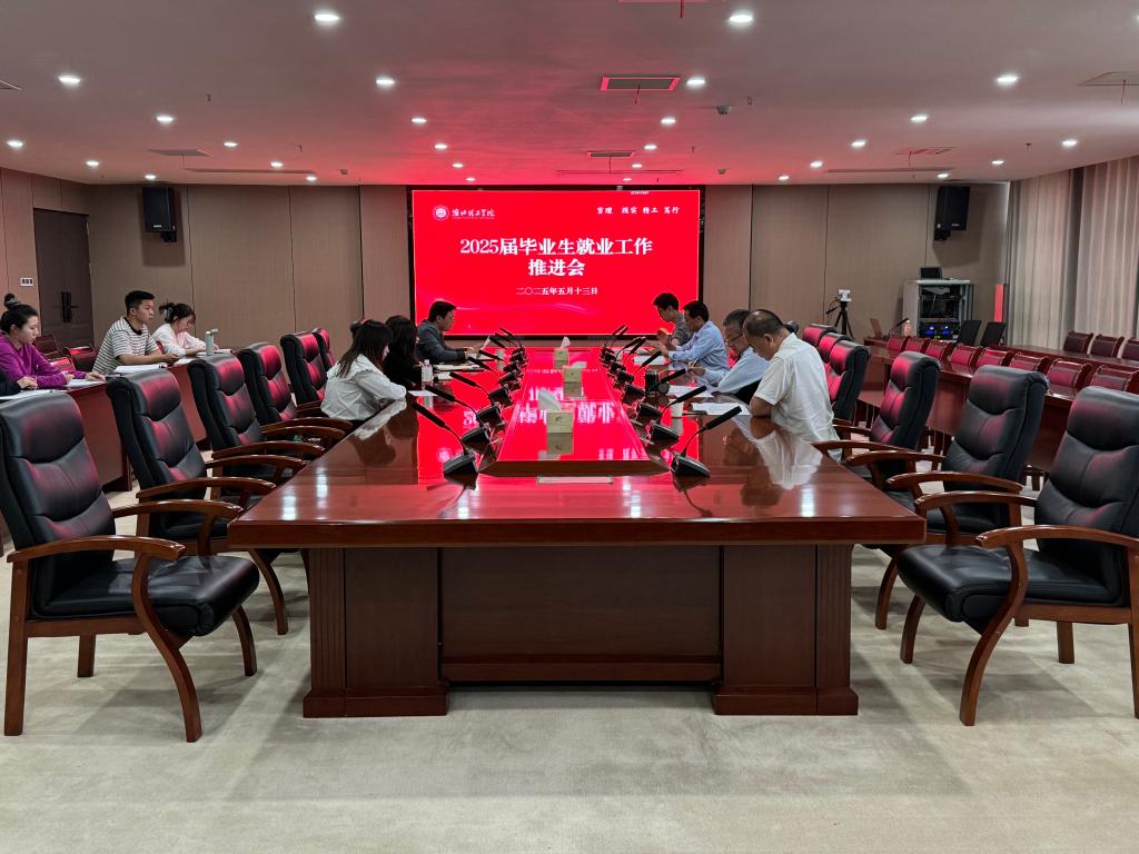 为进一步推进2025届毕业生就业工作,全力冲刺就业百日攻坚阶段目标,5月13日下午,我校在行政楼814会议室召开2025届毕业生就业工作推进会。校党委书记朱德顺、副校长郑来纪、学生处处长孙增响、招生办主任张拓、教育学院副书记孟向红以及各学院书记助理、全体2025届毕业班辅导员参加会议。