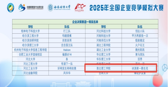 全国企业竞争模拟大赛为中国高等教育学会发布的《全国普通高校大学生竞赛分析报告》(全国普通高校大学生竞赛排行榜)竞赛项目之一。本届赛事设立企业运营、企业决策、供应链决策和数智沙盘共4个赛道。本届大赛自3月初启动以来,共有688所高校近5万名师生报名全国复赛,经过复赛和半决赛的严格选拔,249所院校349支队伍晋级总决赛。其中“企业决策”本科生赛道有100支队伍晋级总决赛,我校经济与管理学院孟慧玲、任浩然、黄晨松三位同学组成的“冰淇凌一路生花”团队((指导老师:员禹辛、陈宇))不畏强手、勇于拼搏、不辱使命,斩获该赛事的一等奖。