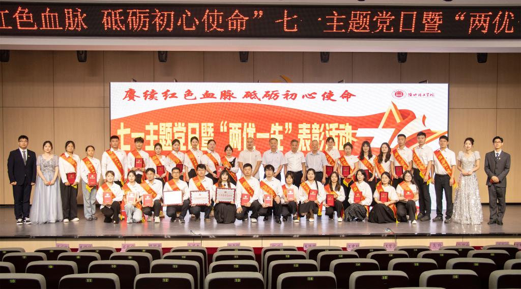 活动在庄严肃穆的国歌声中拉开帷幕。会上,主持人宣读学校党委《关于表彰优秀共产党员、优秀党务工作者和先进基层党组织的决定》,校党委书记朱德顺、校长杨兵等学校领导分别为优秀党务工作者、优秀共产党员、先进基层党组织颁发荣誉证书。