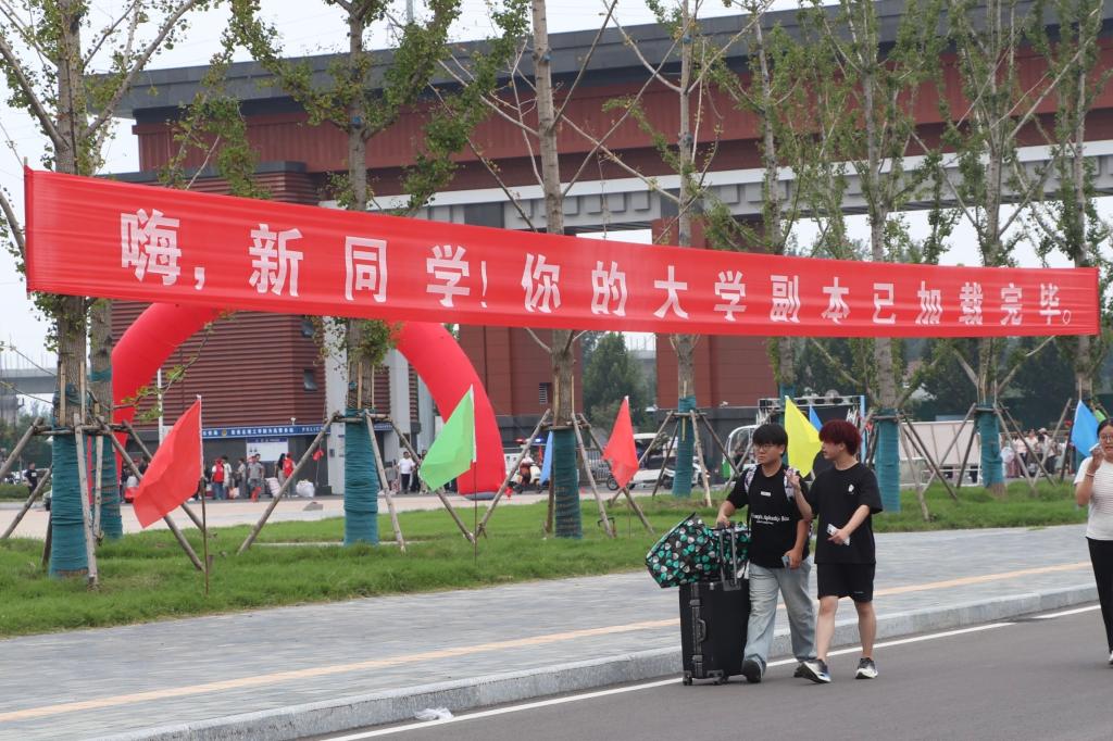 将真诚融在风中,用细节维护一百万个可能,校园已换上“迎新盛装”,用满满的仪式感迎接每一位新同学的到来。校门口,充满朝气的背景墙上“欢迎2025级新同学”的字样醒目又温暖;主干道两侧摆满了彩旗,随风飘扬成一道灵动的风景线;随处可见的迎新横幅以及精致的迎新打卡牌都让新生们倍感亲切;校园内随处可见的指引牌清晰标注着宿舍楼栋号和报到点位置,指引着新生顺利办理入学。从校门口到教学楼,从林荫道到宿舍楼,每一处布置都藏着学校的用心,让初来乍到的新同学们,刚踏入校园就感受到家一般的温馨与关怀。