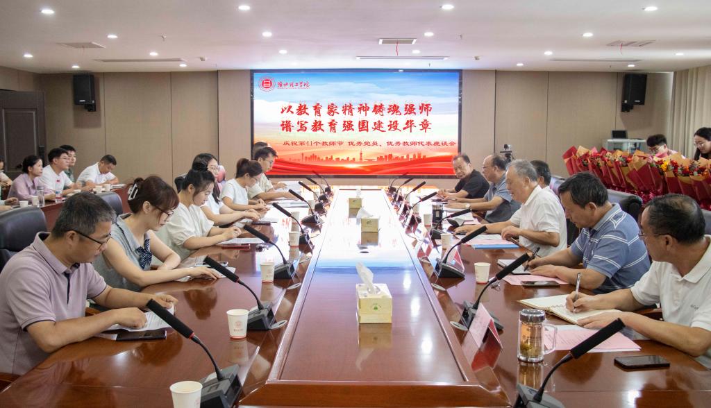 金秋送爽,丹桂飘香;杏坛芬芳,桃李情浓。9月10日,为庆祝第41个教师节,学校以“以教育家精神铸魂强师,谱写教育强国建设华章”为主题,举办优秀党员教师、优秀教师代表座谈会。校党委书记朱德顺,校党委副书记、纪委书记、副校长汪建利,相关部门负责人,优秀党员教师、优秀教师代表共同出席座谈会,共庆属于教育工作者的荣光时刻,共话立德树人的初心使命,共谱教育强国的学府华章。