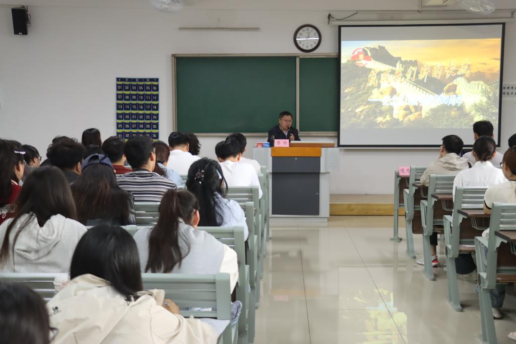廖锋以《筑成我们新的长城——纪念抗日战争胜利80周年》为题,旁征博引、深入浅出地围绕抗日战争的发展脉络与历史地位、以爱国主义为核心的民族抗战凝聚力、中国共产党在抗战中的中流砥柱作用,以及新时代传承弘扬伟大抗战精神四大核心问题展开讲解。他指出,开展纪念胜利活动,旨在铭记历史、缅怀先烈、珍爱和平以及开创未来。他期望全体预备党员于新时代传承并弘扬伟大的抗战精神,强化自身的历史责任感与使命感,激发“强国有我”的青春豪情,全力以赴书写为中国式现代化勇担重任的青春华章。