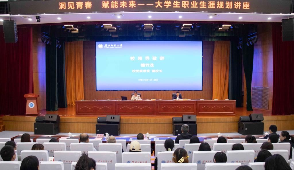 檀竹茂代表淮北师范大学致开场词,对叶念乔董事长的到来表示热烈欢迎,强调本次报告是两校深化交流、助力学子成长的重要契机,希望同学们能从分享中汲取职业规划灵感与奋斗力量。