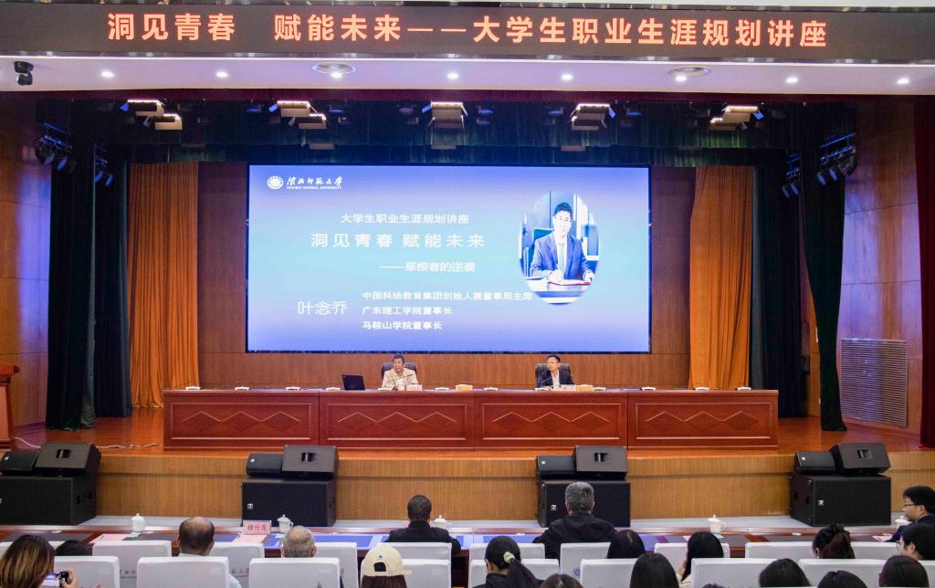 10月14日下午,中国科培教育集团董事长叶念乔受邀前往淮北师范大学以“洞见青春 赋能未来——草根者的逆袭”为主题,开展大学生职业生涯规划专题报告,淮北理工学院董事长查东辉、校长杨兵陪同出席。淮北师范大学校党委常委、副校长檀竹茂主持活动,该校学生代表现场聆听报告。
