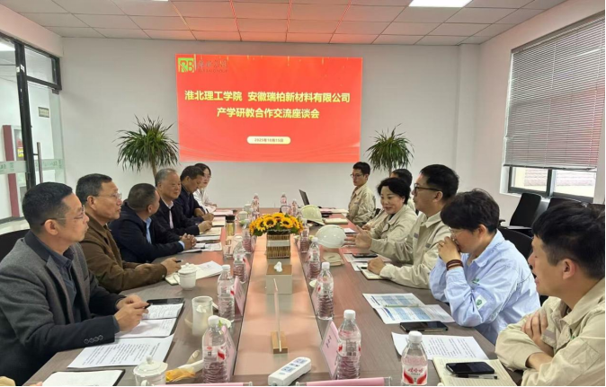 2025年10月15日上午,由淮北市工业和信息化局党组成员、副局长张海军、科技科科长杜文明牵头组织,淮北理工学院党委副书记、副校长汪建利带队,科技处处长王广健、能源材料与化工学院院长万新军一行赴安徽瑞柏新材料有限公司调研交流。安徽瑞柏新材料有限公司总经理张燕、总顾问洪呈祥及相关企业负责人出席座谈会。
