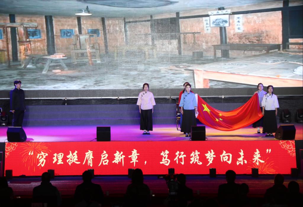 由学生群体及少数民族学生代表共同演唱的《大中国》正式开启活动序幕,该歌曲以艺术形式深情赞颂祖国的壮丽山河与发展成就。《烈火中永生——红岩》融合情景剧与朗诵,再现江姐等先烈事迹,彰显对美好生活的追求。杜集区文旅体局表演经典非遗花鼓戏《花园饯行》,让观众领略非遗魅力。舞蹈《光亮》、《月光》舞出跌宕人生,传递中国人的豁达胸襟。