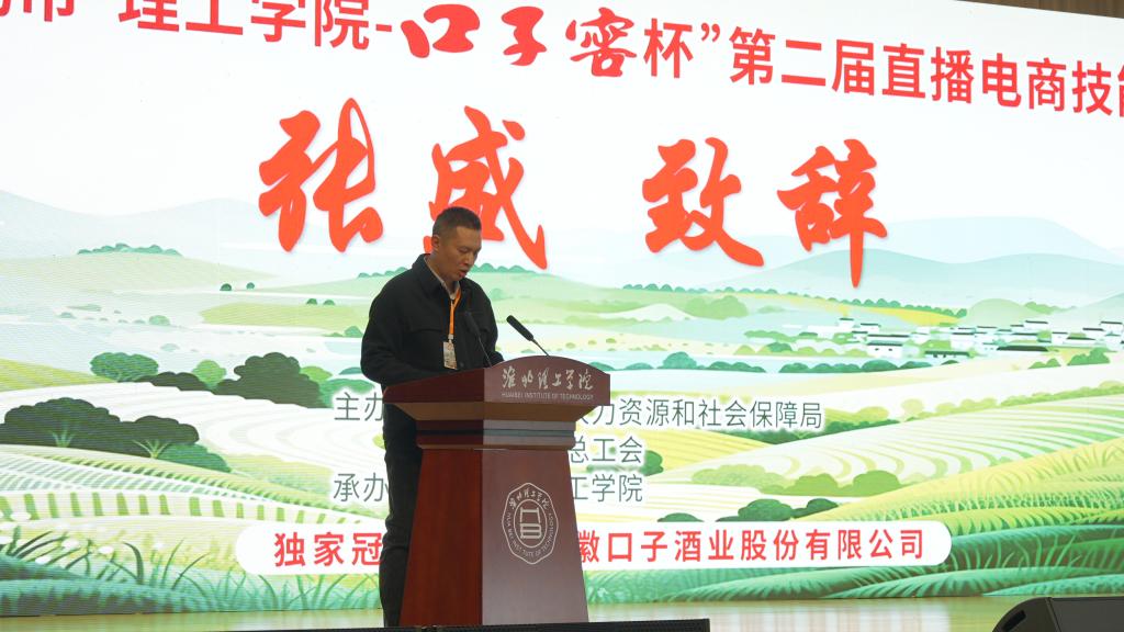2025年10月26日14时,备受关注的淮北市“理工学院-口子窖杯”第二届直播电商技能大赛决赛在淮北理工学院正式拉开帷幕。本次大赛由淮北市人力资源和社会保障局、淮北市总工会主办,淮北理工学院承办,安徽口子酒业股份有限公司独家冠名赞助。淮北理工学院校长杨兵,党委书记、督导专员朱德顺,党委副书记、纪委书记、副校长汪建利、副校长郑来纪以及淮北市人力资源和社会保障局副局长张华、杜集区政府副区长郭守厚,安徽口子酒营销有限公司淮北分公司经理杨新德,淮北顺达商贸有限公司常务副总经理张盛等相关领导参加活动、观摩比赛。大赛邀请了行业、企业和学校的专家组成评审团和监赛团,为比赛注入了权威性与专业性。