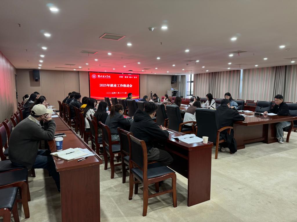 为贯彻落实省教育厅、人社厅高校毕业生就业工作视频会议精神,全面推进我校毕业生就业工作,10月28日下午,我校在行政楼814会议室召开秋季就业工作推进会。校党委书记朱德顺出席会议并讲话。各二级学院副书记、书记助理,2025届、2026届毕业班辅导员参加会议。