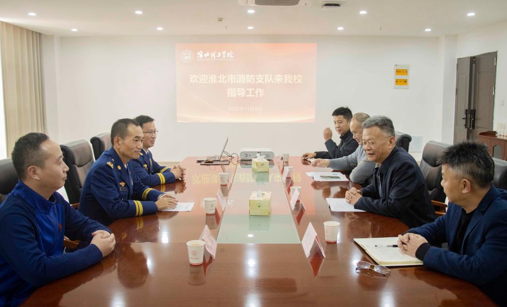 11月4日下午,淮北市消防支队一级督导员王德科、杜集区消防救援大队队长徐凯、杜集区消防救援大队教导员马波来我校指导工作。校长杨兵、副校长郑来纪、后勤保卫处处长程坚、团委书记刘帅克出席交流会。