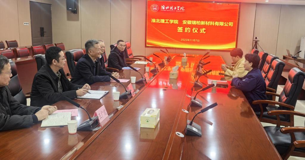 2025年11月7日,立冬节气。逢冬遇暖,这天上午,淮北理工学院与安徽瑞柏新材料有限公司签署校企合作协议。学校校长杨兵、副校长汪建利,教务处处长陈国平、人事处处长侯为波、科技处处长王广健、能源材料与化工学院院长万新军等人热情接待安徽瑞柏新材料有限公司总经理张燕、人事行政部经理徐月霞一行,并共同见证协议签署。