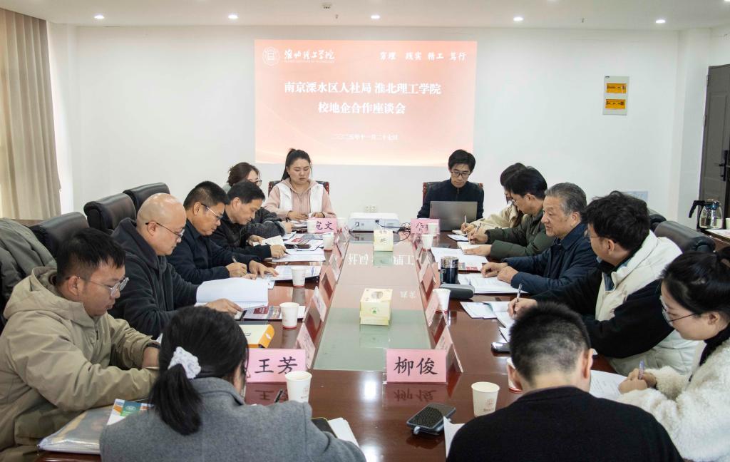 下午3时30分,政校企交流座谈会在行政楼811会议室召开。会议伊始,与会人员分别观看了淮北理工学院宣传片、南京市溧水区宣传片,加深政校企三方相互之间的了解。
