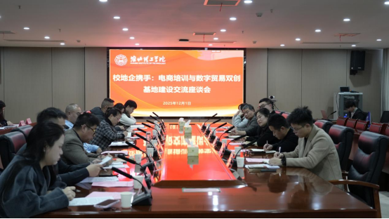 12月1日下午,电商培训与数字贸易双创基地建设交流座谈会在综合实验楼814会议室成功举办,校地企携手共话双创基地建设。淮北市杜集区商务局局长席宗萍、副局长范宇峰、区老干部服务管理中心副主任王君以及皖北电商产业园负责人郝明溪、皖北电商产业园副总刘长军、皖北电商产业园电商部主管韩梦玲到会;淮北理工学院副校长郑来纪、教务处长陈国平、“一村一主播”项目组长、经管学院的相关负责人参加本次活动。座谈会由经济管理学院吴玲院长主持。
