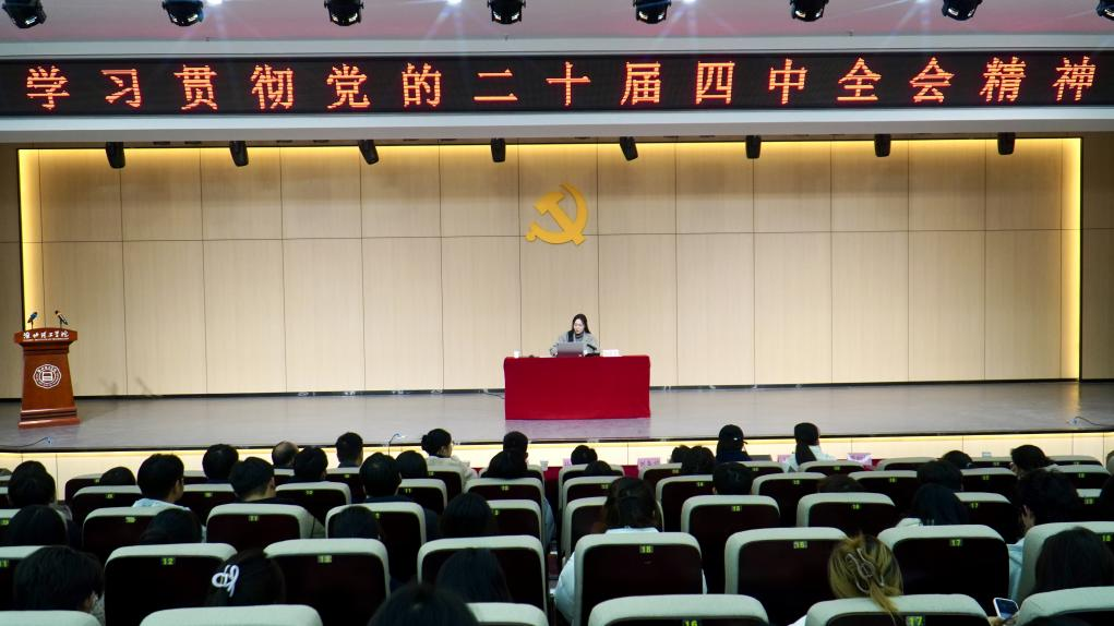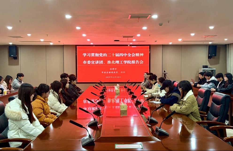 为深入学习贯彻党的二十届四中全会精神,落实淮北市委统一部署,12月10日下午,淮北市专家宣讲团成员、淮北理工学院马克思主义学院教研室主任孙澄澄老师在我校作宣讲报告。我校党建办、学生处、团委、马院主要负责人出席报告会,学校各班级团支书、思政委员、2025年青马工程学员、马克思主义学院部分教师共400余人共同聆听了宣讲报告会。
