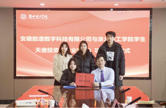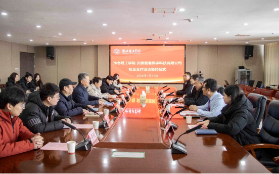 2026年1月21日上午10:30,在综合实训楼814会议室举行淮北理工学院与淮北市跨境电商产业园(由安徽脸谱数字科技有限公司运营)校企合作洽谈签约仪式暨天使投资(创业孵化)项目的签约。淮北市商务局二级调研员曹崇君、淮北市相山副区长徐梦茹、淮北市相山区商务局副局长陈琪,安徽脸谱数字科技有限公司董事长王磊,我校校长杨兵、教务处处长陈国平、学生处副处长张拓,经济与管理学院相关教师及天使投资(创业孵化)项目全体成员出席活动。活动由经管学院吴玲院长主持。