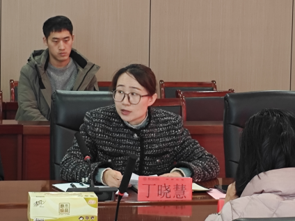 随后,我校职业技能等级认定工作负责人丁晓慧老师就学校申报工作情况进行了汇报。她从相关工种依托的本科专业课程设置、教学目标、实习实践安排、成绩合格标准五个方面,对学校职业技能等级认定的准备工作作了说明。