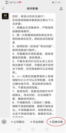 1.采集的学历图像将用于“人脸识别”图像比对。此照片将用于毕业生学信网学历注册,请务必查看图像采集说明。