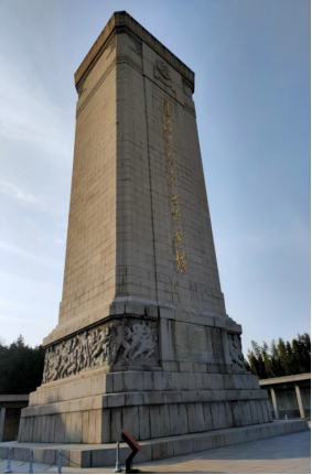 由2021级电信2班周芮所带团队赴淮海战役烈士纪念塔,深入的了解到了这个三大战役中解放军牺牲最重,歼敌数量最多,政治影响最大,战争样式最复杂的战役。战役以人民为基础,也被誉为”小推车推出来的战役。团队成员首先来到了淮海战役纪念塔,抬头仰望,高大的淮海战役烈士纪念塔巍然屹立,静默的诉说着历史。