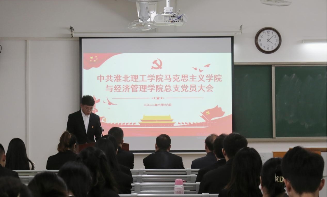 党建引领铸辉煌,笃定前行谱新篇。10月26日,淮北理工学院马克思主义学院与经济管理学院党总支在二教422教室隆重召开党员大会。校党委委员、党建办公室主任付金沐同志、校党建办公室陈蓓同志受邀参加本次大会,马克思主义学院与经济管理学院党总支书记、院长吴玲,全体教职工和学生党员、预备党员105人参加本次大会。会议由经济管理与建筑工程学院书记助理叶赵强主持。