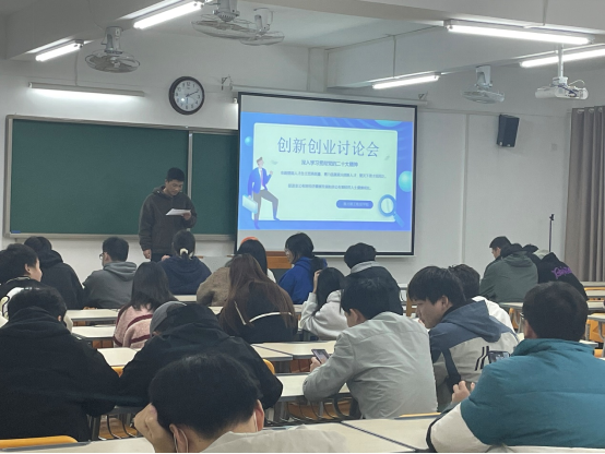 为了积极引导大四毕业生了解创业知识,培养创业意识,提高创业能力,11月22日电子与信息工程学院于二教323召开了创新创业讨论会。会议由学生会牵头,各班班委进行组织学习,就关于“深入学习贯彻党的二十大,全面提高人才自主培养质量,着力造就拔尖创新人才”为主题,同学们就自身的理想、创新创业想法及就业方向各抒己见,积极上台进行演讲与分享。