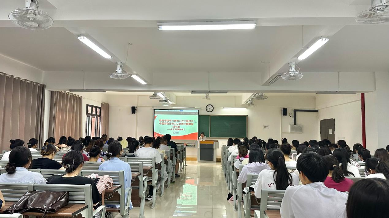 5月15日下午,教育学院在1教420教室开展学习贯彻习近平新时代中国特色社会主义思想主题教育读书班——学生党员集中学习活动。活动由学院组织员陈慧慧同志主持,各学生党支部书记、学生党员和52名发展对象参加学习活动。