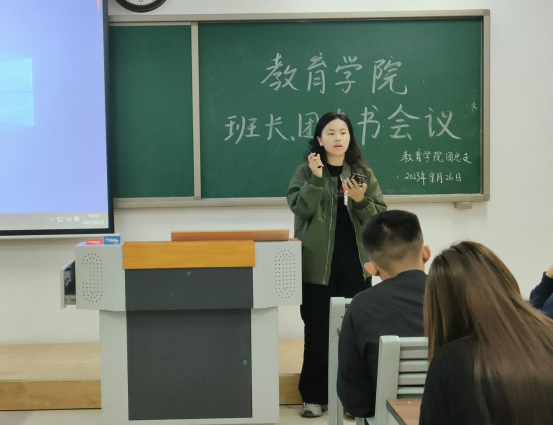为进一步强化学生干部队伍建设,发挥学生干部模范带头作用,促进学院学生管理工作的有序开展,9月26日下午,教育学院在1号教学楼520教室召开2023级学生班级班长、团支书培训会。学院分管副书记孟向红、书记助理黄莹莹、团总支副书记许海涛、2023级全体辅导员以及2023级全体班长、团支书参加了本次培训会。