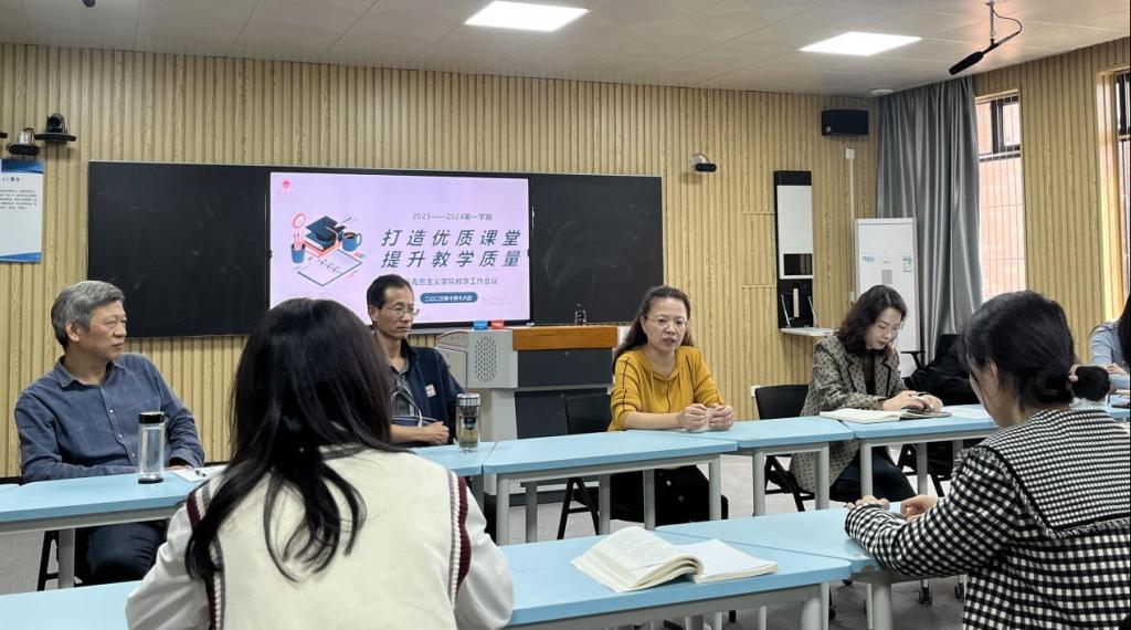 为全面深入诊断思政课教学中存在的问题,有效提升思政课教学质量,10月18日下午,马克思主义学院在一教211智慧教室召开“打造优质课堂 提升教学质量”教学工作专题会议。院长吴玲、马院的教授、青年教师导师以及特邀淮北师范大学马院副教授宇海金博士和全体马院教师参加会议,院长助理陈志操主持会议。