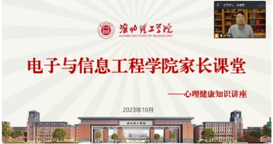 为全面推进素质教育,加强学生的心理健康教育,电子与信息工程学院于10月30日8点开展线上心理健康知识讲座活动。本次活动主讲人为电子与信息工程学院团总支书记侯绪芳老师,电子与信息工程学院学生家长参加了此次线上课堂。