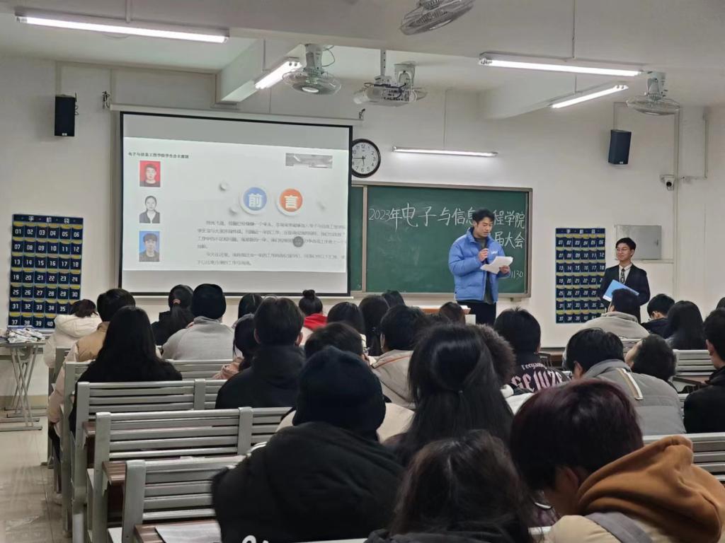 11月29日,电子与信息工程学院学生会换届大会在第一教学楼405教室举行。电信学院学生会主席梅毅松、副主席朱昊、副主席陈可怡、新主席徐娜娜同学以及学生会新老干部出席本次会议。本次换届大会的主持人是宇文昕羽。