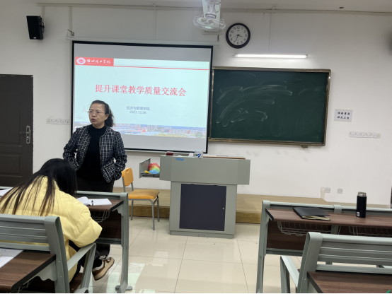 为了进一步提升经济与管理学院的课堂教学质量,促进教师间的经验交流和共享,学院于12月6日在一教219举行提升课堂教学质量专题交流会。这次会议旨在搭建一个平台,让教师们分享成功经验、研讨创新方法,共同探讨如何更有效地传授知识,激发学生学习兴趣,以及应对教学挑战。本次交流会由吴玲院长主持,王胜男老师主讲,学院全体教师参加。
