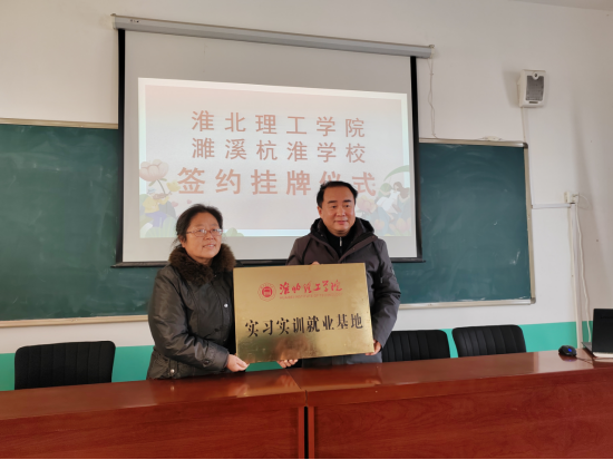 随后,双方举行了隆重的签约挂牌仪式,授予杭淮学校“淮北理工学院实习、实训、就业基地”。