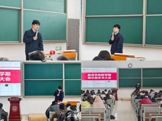 为切实增强学院班团队伍建设,加强学生班级管理,提升学生干部的领导力与团队协作能力,部署新学期学院团学相关工作,教育学院3月5日中午在1号教学楼121教室召开“新学期班长团支书大会”,并举行了“学雷锋月”启动仪式。分管副书记孟向红、全体辅导员老师及全院非毕业班班长、团支书参加了会议和相关活动。会议由学院团总支副书记许海涛主持。