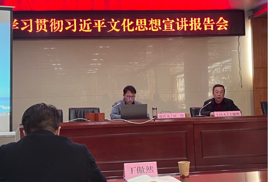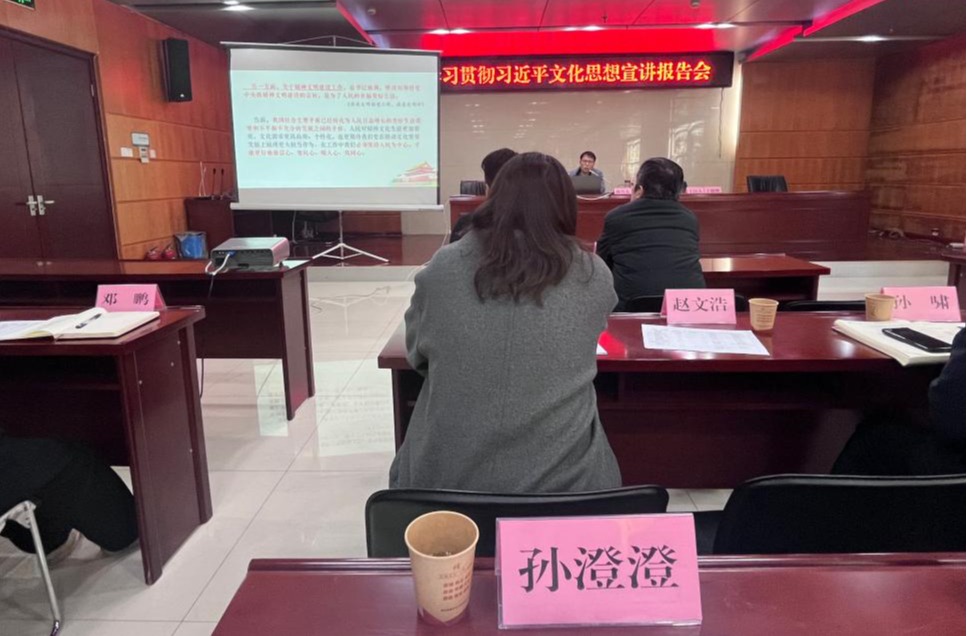 为深入学习贯彻习近平文化思想,全市开展习近平文化思想专题宣讲活动。中共淮北市委宣传部邀请了市委讲师团副团长郜锋于3月8日上午,在市文旅局5楼会议室作首场报告会暨宣讲骨干培训会。马克思主义学院讲师孙澄澄作为市“举旗帜·送理论”宣讲团成员,代表学校参加会议。
