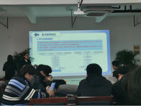 在宣讲会结束后,企业给现场同学有意向的同学进行了专业化的面试。并对同学们就职业发展、晋升道路、薪资待遇等问题的给予了详细的回答。