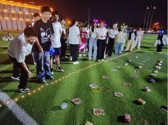 夜跑活动结束后,在终点处依据名次来获得套圈的个数,前10名到达者可获得5个套圈机会,第11至20名到达者可获得4个套圈机会,其余参与者每人3个套圈机会。为了帮助每位参与的同学们都可以赢得多种多样的精美小礼品工作人员还专门设计了知识竞答的方式来增加同学们套圈的机会。