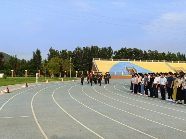 春风和煦,晨光熹微,国旗护卫队身着戎装,昂首挺胸,迈着整齐而坚定的步伐,护送鲜艳的五星红旗至升旗台。国歌奏响,五星红旗冉冉升起,全体师生庄严肃立,行注目礼。