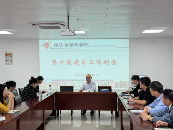 为进一步提升毕业论文的指导质量,确保学生毕业论文高质量完成。2024年10月15日下午,经济与管理学院在行政楼725会议室组织召开第七周教学工作例会及毕业论文指导教师培训会。本次会议由院长吴玲主持,院长助理、银龄专家以及毕业论文指导教师共同参会。