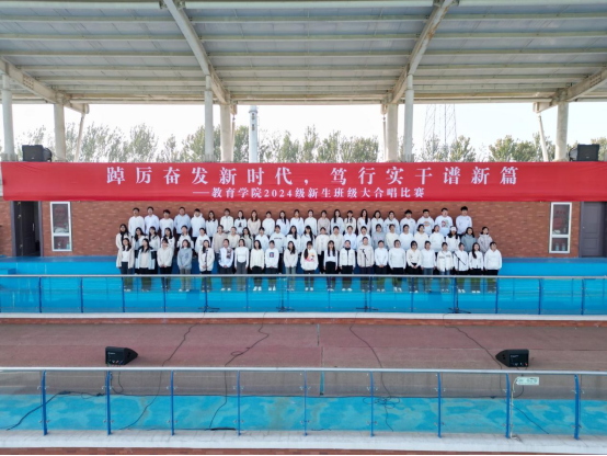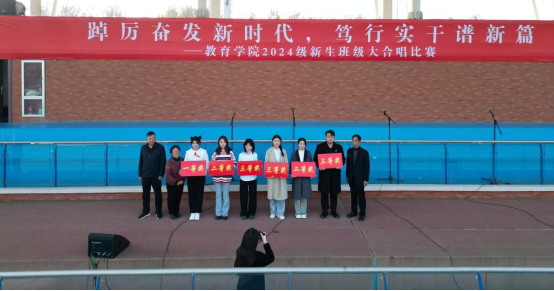 为进一步丰富同学们的校园文化生活,增强班级集体荣誉感,展现青年学生朝气蓬勃、团结一致、开拓进取的精神风貌,教育学院在2024级新生班级中举办了“踔厉奋发新时代,笃行实干谱新篇”第四届新生班级大合唱比赛,34个新生班级1200多名同学组成17支参赛队伍参加了比赛,非新生班级的辅导员老师担任评委。学院领导、辅导员老师及全体2024级新生观摩了比赛。