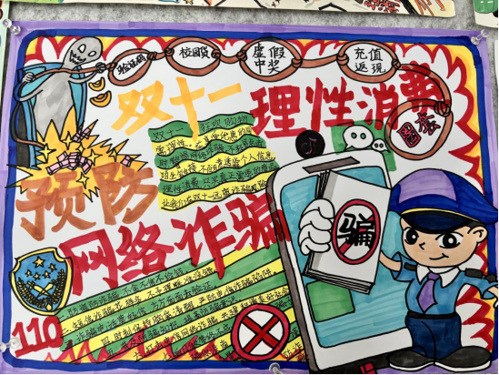 在“双11”来临之际,为增强同学们理性消费的意识,提高预防网络诈骗的能力,教育学院于11月上旬举办了以“理性消费,预防诈骗”为主题的手抄报比赛。本次比赛旨在引导同学们理性消费,保持理性和警惕,避免陷入消费陷阱和遭受网络诈骗,保障个人财产安全。