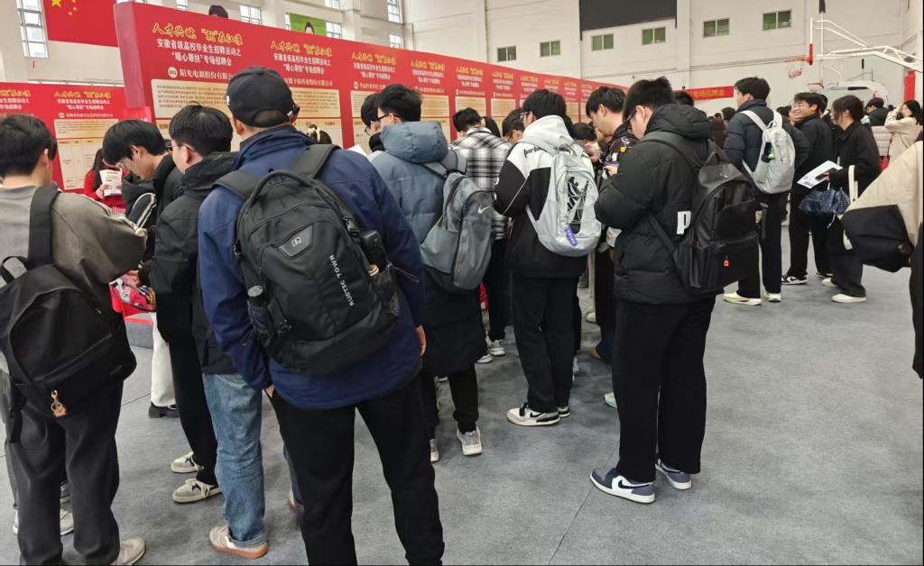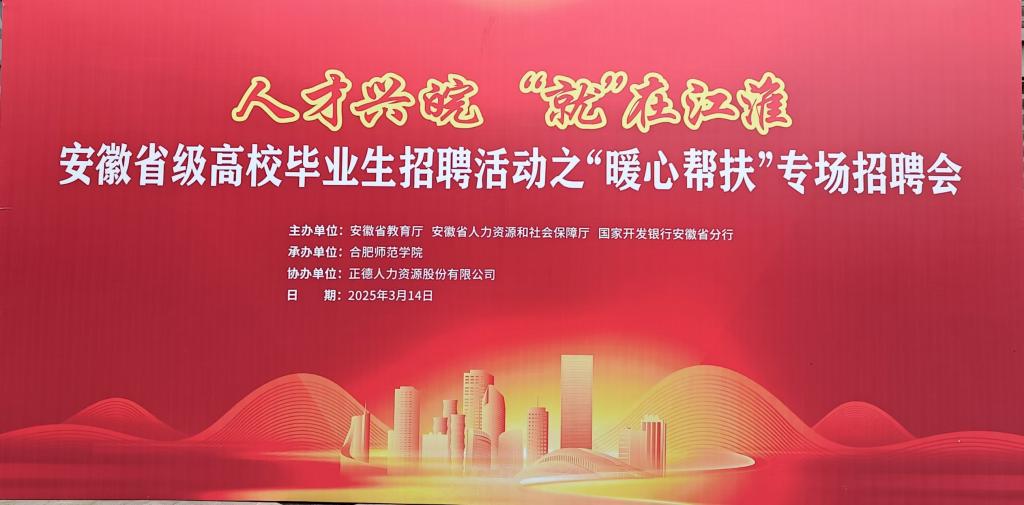 2025年3月14日,经济与管理学院组织学生前往合肥师范学院,参加由安徽省教育厅、安徽省人力资源和社会保障厅、国家开发银行安徽省分行联合主办,合肥师范学院承办,正德人力资源股份有限公司协办的 “人才兴皖,‘就’在江淮——安徽省高校毕业生招聘活动之‘暖心帮扶’专场招聘会”。