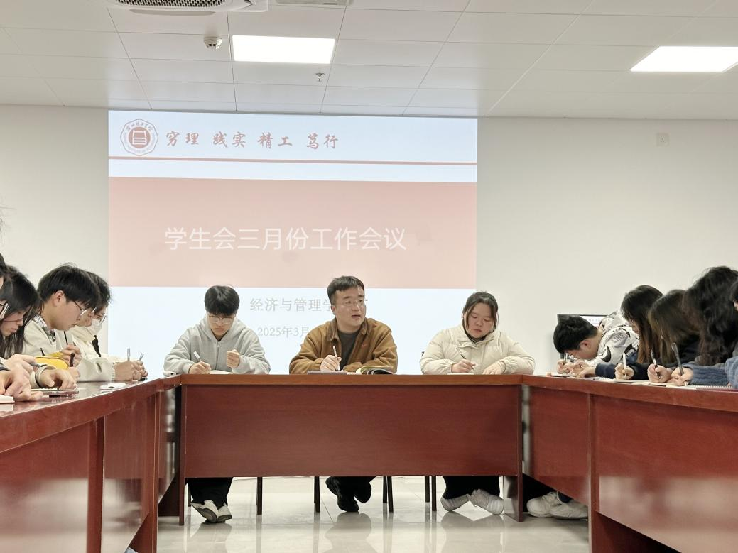 为深化红色文化教育,提升学生思想政治素养,同时总结学生活动经验、优化工作机制,经济与管理学院于2025年3月19日在行政楼725会议室召开三月份学生会工作例会。会议由学院团总支书记王绎程主持,学生会全体成员参会。会议强调,要在学生工作中融入红色文化,通过多样化的活动形式传承红色基因,增强学生的责任感和使命感,不断提升学生会的组织力和服务水平。