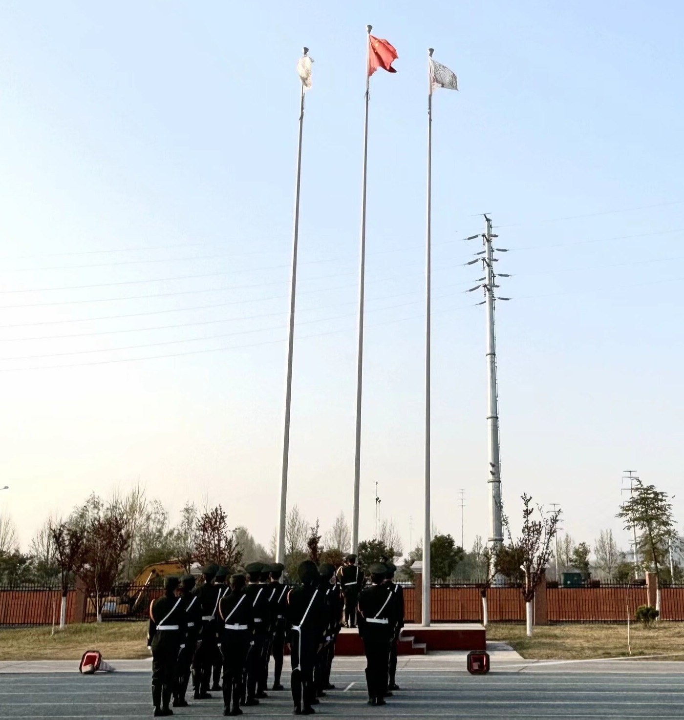 晨曦初照,与会师生整齐列队于操场之上。激昂雄壮的《义勇军进行曲》骤然奏响,英姿飒爽的国旗护卫队迈着铿锵有力的正步,护送五星红旗稳步前行。在全场师生的庄严注目下,鲜艳的五星红旗冉冉升起,猎猎飘扬于蓝天之下,那一刻,爱国的豪情在每个人心中澎湃翻涌。