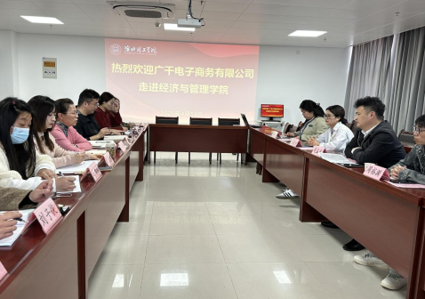 4月14日上午10点广千电子商务有限公司(以下简称“广千电商”)总经理赵玉龙一行走进淮北理工学院,与经济与管理学院在行政楼725会议室开展校企合作交流座谈会。广千电商总经理赵玉龙、副总经理赵澜夕、周裕渊、人事主管胡肖,经管学院院长助理叶赵强、书记助理员禹辛、团总支书记王绎程以及25届毕业班辅导员参会,会议由院长吴玲主持。