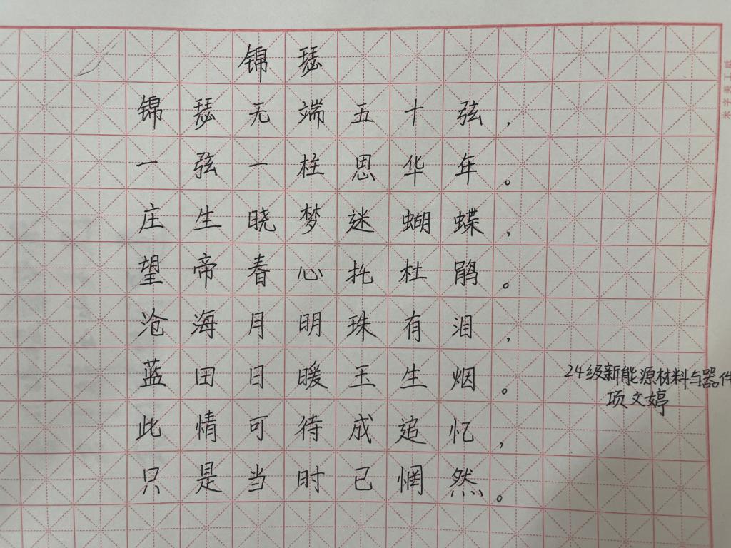 此次“笔墨中国”硬笔书写大赛的成功举办,不仅丰富了同学们的课余文化生活,更提升了大家对书法艺术的鉴赏能力和审美水平。在提升同学们艺术修养的同时,也展现了能源材料与化工学院学子在专业学习之外的多才多艺与人文情怀。未来,学院将继续开展类似的文化活动,让中华优秀传统文化在校园中绽放更加绚烂的光彩,助力学生全面发展。