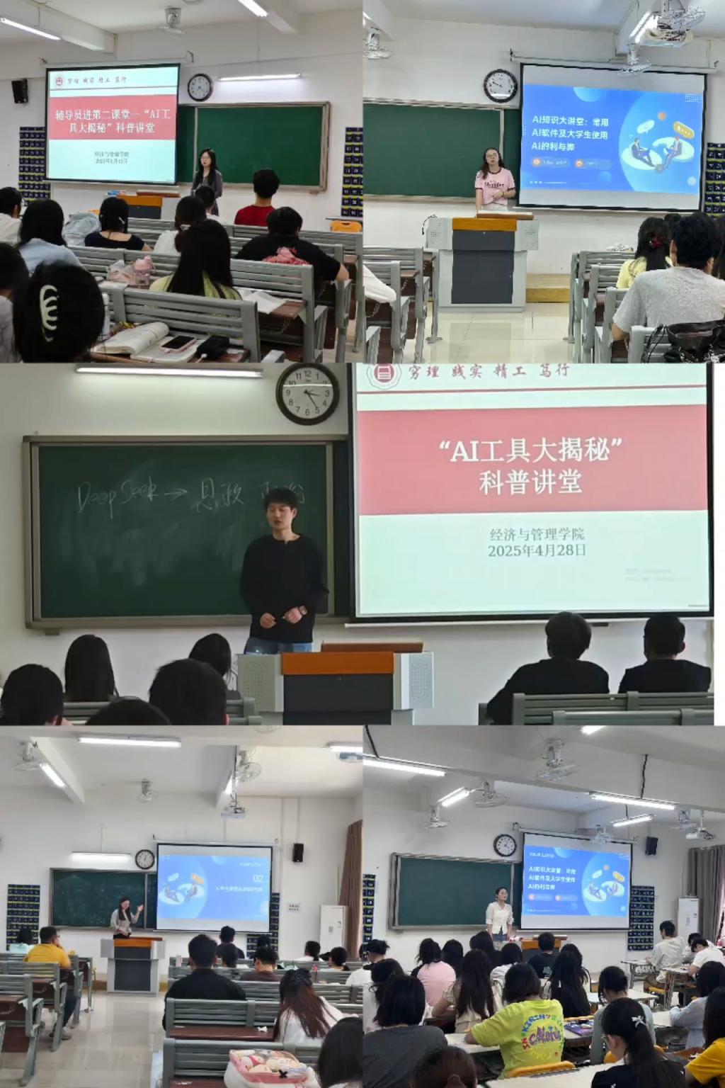 为进一步落实高校立德树人根本任务,创新第二课堂育人模式,助力学生AI素养提升,经济与管理学院全体辅导员于2025年4月25日至5月20日开展为期三周的辅导员进第二课堂“促学生AI素养提升”活动。