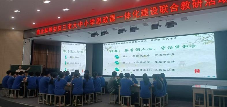 日前,由淮北市教育科学研究所、蚌埠市教育科学研究所及安庆市教育教学教研室联合主办的“淮北蚌埠安庆大中小学思政课一体化建设联合教研活动”在淮北市实验高中成功举办。活动以“传承传统文化,弘扬法治精神”为主题,旨在通过大中小学思政课一体化教研,深化三地教育交流与合作,共同探索大中小学思政课一体化建设新路径。淮北理工学院马克思主义学院负责人及部分教师参加了此次活动。