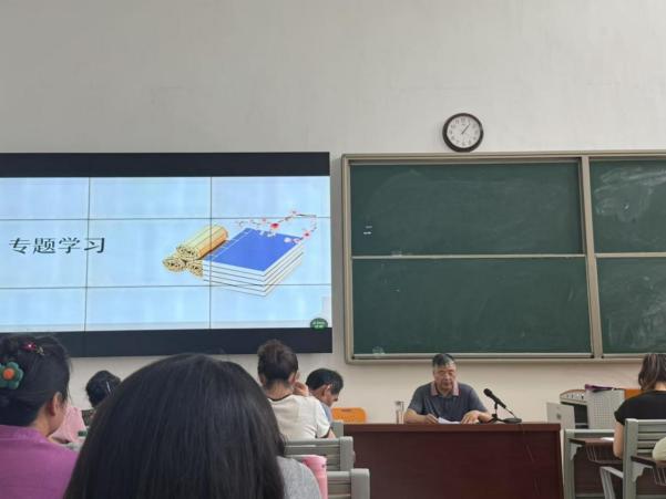 在专题学习环节,王家云院长带领全体教职工深入学习习近平总书记关于教育家精神的重要论述,学习《教育强国建设规划纲要(2024 -2035 年)》《教育部第九部门关于加快推进教育数字化的意见》的主要内容。通过学习,教职工们对教育家精神有了更清晰的认识,深刻领会到教育家精神是“心有大我、至诚报国的理想信念,言为士则、行为世范的道德情操,启智润心、因材施教的育人智慧”的集中体现,明确了自身肩负的责任和使命。