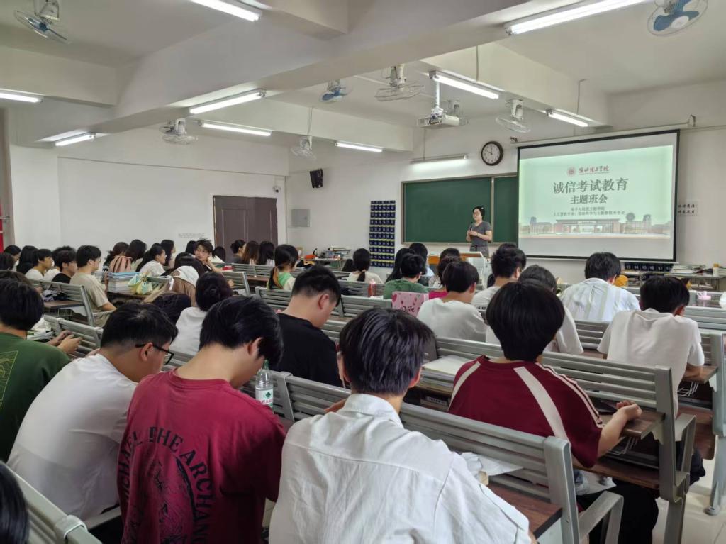 近日,为迎接即将到来的期末考试,营造风清气正的考试氛围,强化学生的诚信意识,电子与信息工程学院全体辅导员在学院各班级教室分别召开了以“诚信考试,诚信做人”为主题的期末考试诚信教育班会。本次班会覆盖电信学院全体在校生,旨在通过集中教育引导学生树立正确的考试观念,自觉遵守考试纪律,以诚信之姿迎接期末挑战。