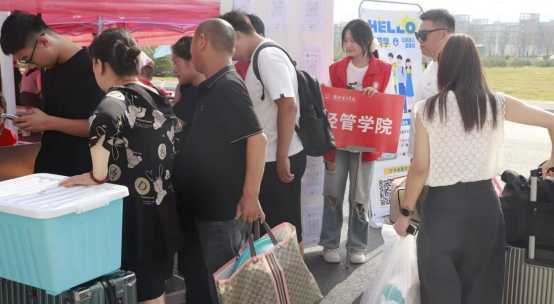 报到当天清晨,身着红色马甲的志愿者们已各就各位,以饱满的热情投入迎新工作。学院领导班子始终坚守“为群众办实事”的初心使命,全程深入迎新一线统筹协调各项工作。前期,班子成员牵头开展多轮调研,结合往年迎新经验与新生需求,对报到流程进行优化调整,从信息核验、材料收取到校园指引,每一个环节都反复打磨,确保衔接顺畅、高效便捷;报到当日,领导们更是扎根现场,与新生及家长亲切交流,仔细倾听他们的疑问与需求,对行李存放、宿舍分配、专业咨询等问题逐一耐心解答,以“靠前指挥、一线服务”的担当,为迎新工作筑牢坚实后盾,也让新生和家长在细致关怀中真切感受到学院的温度与诚意。
